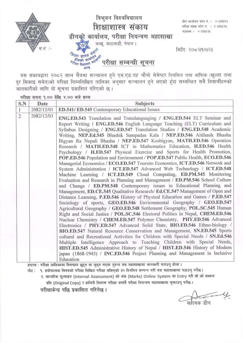 08, Feb 2026 | M.Ed.4th semester Exam Routine 2082 published