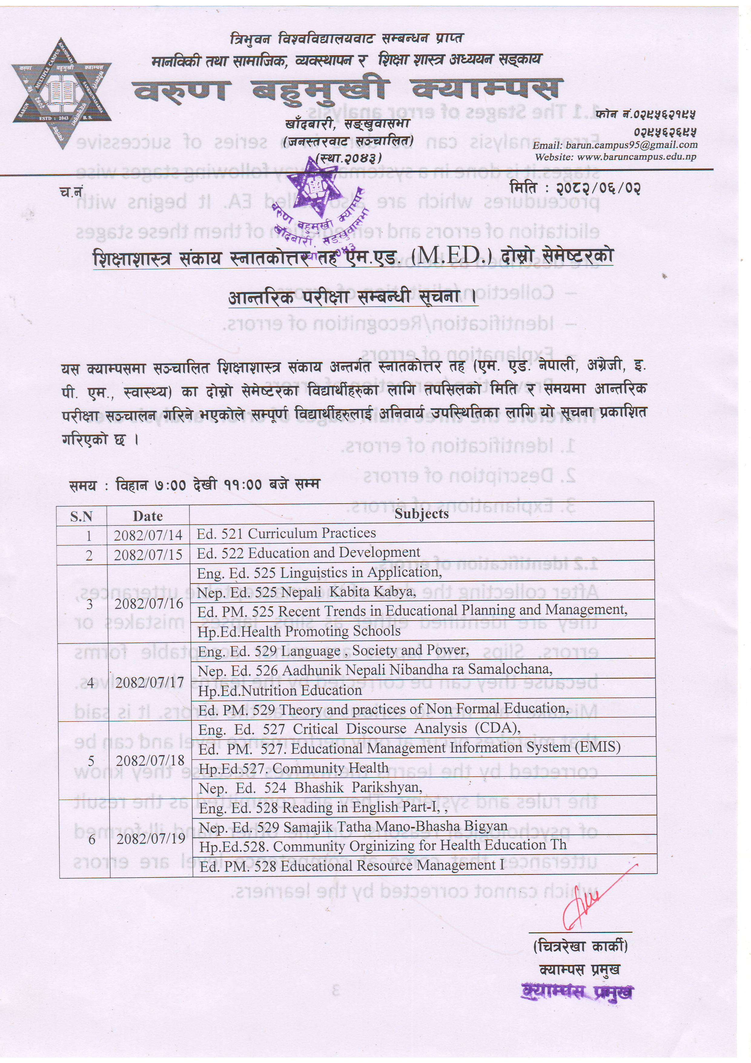 рд╢рд┐рдХреНрд╖рд╛рд╢рд╛рд╕реНрддреНрд░ рд╕рдВрдХрд╛рдп рд╕реНрдирд╛рддрдХреЛрддреНрддрд░ рддрд╣ рдПрдо.рдПрдб. (M.ED.) рджреЛрд╕реНрд░реЛ рд╕реЗрдореЗрд╖реНрдЯрд░рдХреЛ рдЖрдиреНрддрд░рд┐рдХ рдкрд░реАрдХреНрд╖рд╛ рд╕рдореНрдмрдиреНрдзреА рд╕реВрдЪрдирд╛